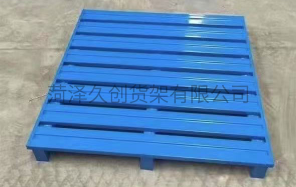 钢制托盘是一种用于机械化装卸、.搬运和堆存货物的集装箱单元工具,基本结构由单层铺板下设纵梁或垫块、支腿等所组成,托盘的最小高度以能方便使用叉车或托盘搬运车为原则。